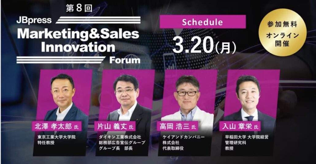 【基調講演】JB PRESS 第8回 マーケティング&セールスイノベーションフォーラム2023年3月20日開催のJB PRESS「第8回 マーケティング&セールスイノベーションフォーラム」にて基調講演を担当いたします。 講演テーマ「コロナ禍を通じ…